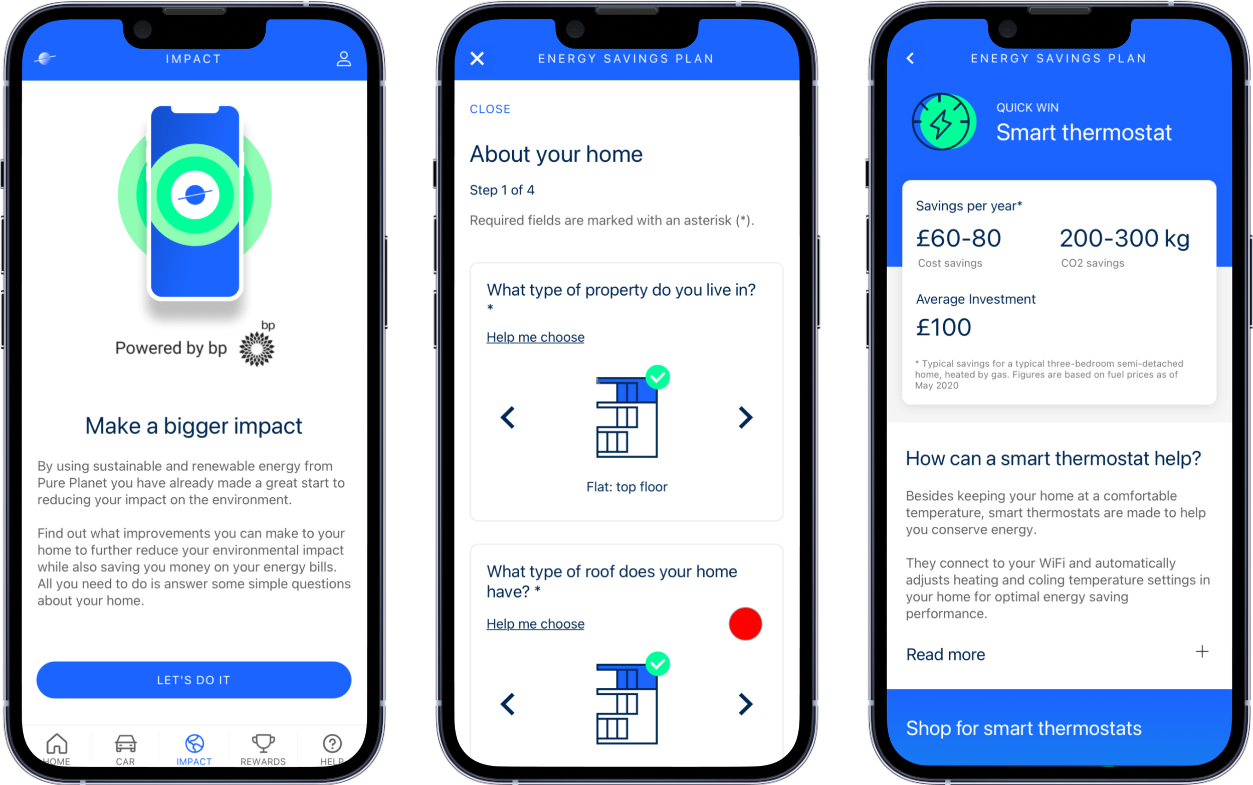 Recommendations for other sustainable solutions to help users save even more, such as smart thermostats and EV home charging points