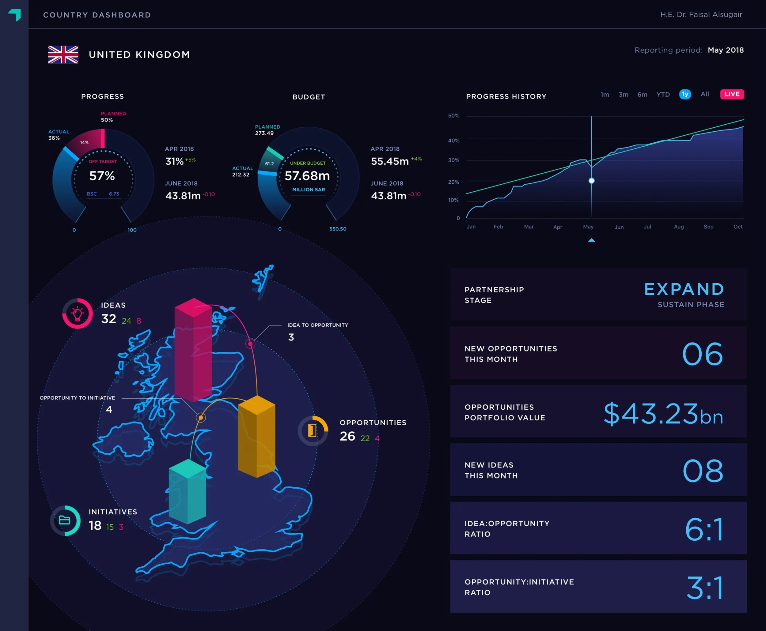 I was the Lead Product Designer for the project to create various performance dashboards for the Strategic Partnerships government entity.